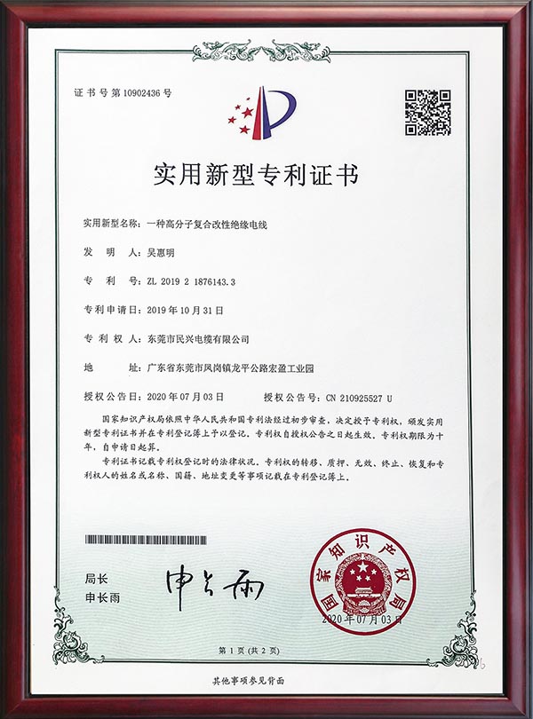 • 專利證書-一種高分子復(fù)合改性絕緣電線