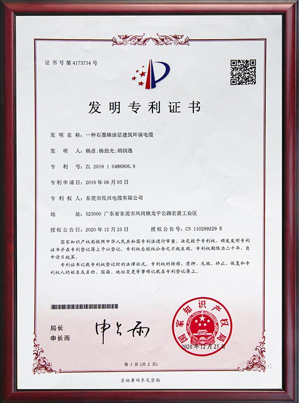 • 一種石墨烯涂層建筑環(huán)保電纜-2021年