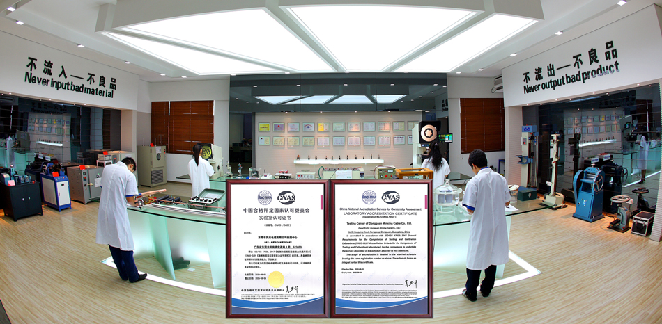 民興建立了專業(yè)的電線電纜檢測中心,根據(jù)國際標(biāo)準(zhǔn)ISO/IEC17025體系標(biāo)準(zhǔn)開展檢測,并且實驗室通過了權(quán)威的國家認(rèn)可委CNAS認(rèn)證;擁有國際領(lǐng)先的檢驗試驗設(shè)備100多臺(套),檢驗項目覆蓋所有產(chǎn)品的國家GB標(biāo)準(zhǔn)/國際IEC標(biāo)準(zhǔn)的各項指標(biāo),可以對產(chǎn)品電氣性能、機械性能、高溫性能、低溫性能、燃燒性能等進行全面檢測;建立了全流程的檢驗控制體系,覆蓋原材料檢測、半成品檢測、成品檢測三大環(huán)節(jié),有效控制產(chǎn)品質(zhì)量,確保實現(xiàn)“不流入不良品、不流出不良品”的質(zhì)量目標(biāo)。