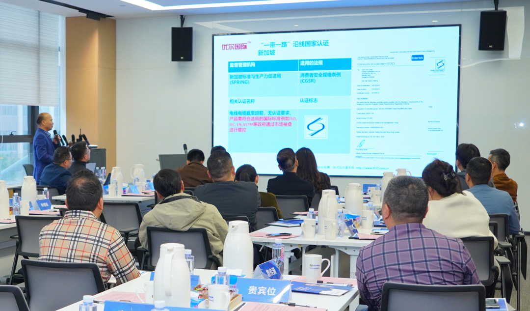 優(yōu)爾檢測認證副總經(jīng)理唐明全以《“一帶一路”沿線國家電線電纜出海要求》為主題,詳細解讀了“一帶一路”沿線國家線纜產(chǎn)品海外認證標準、技術(shù)法規(guī)及關(guān)鍵注意事項等,為確保企業(yè)線纜產(chǎn)品符合海外標準提供了全面清晰的指引。