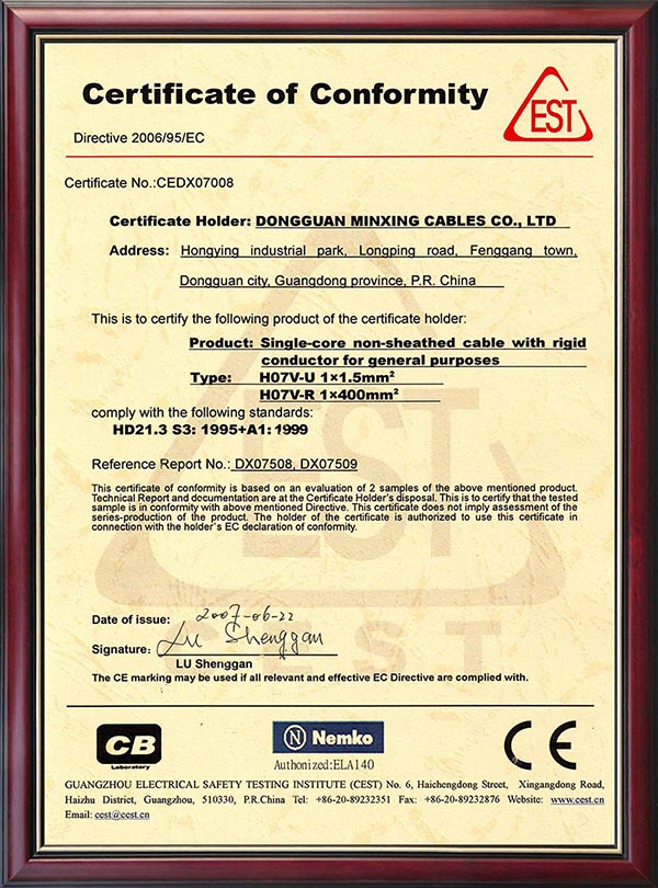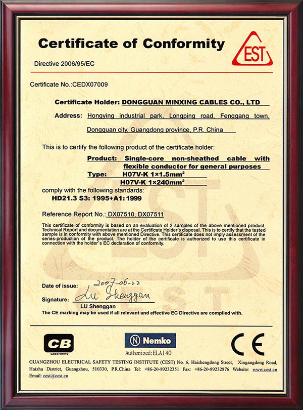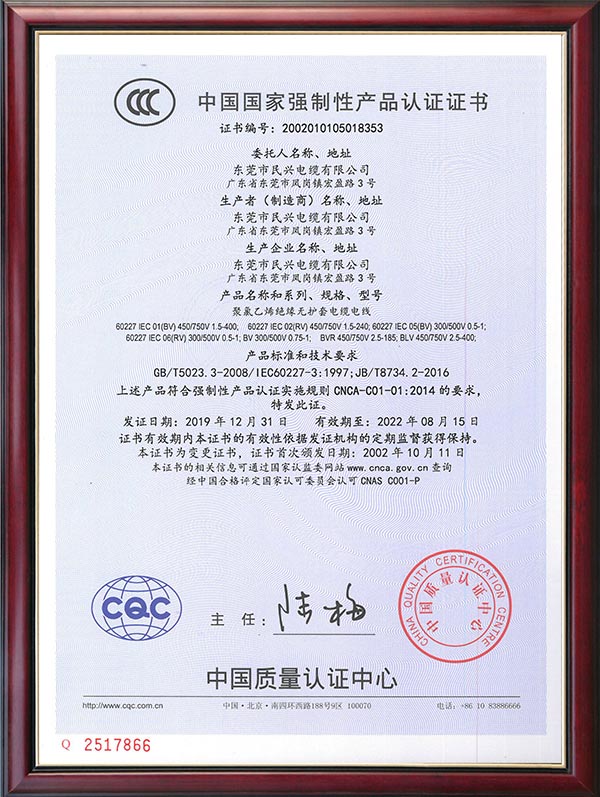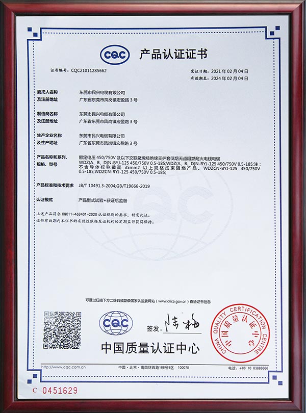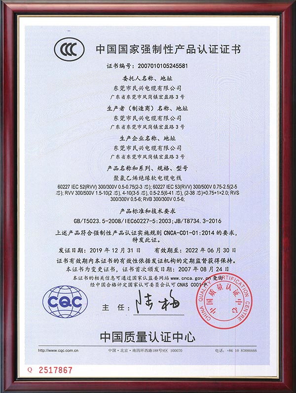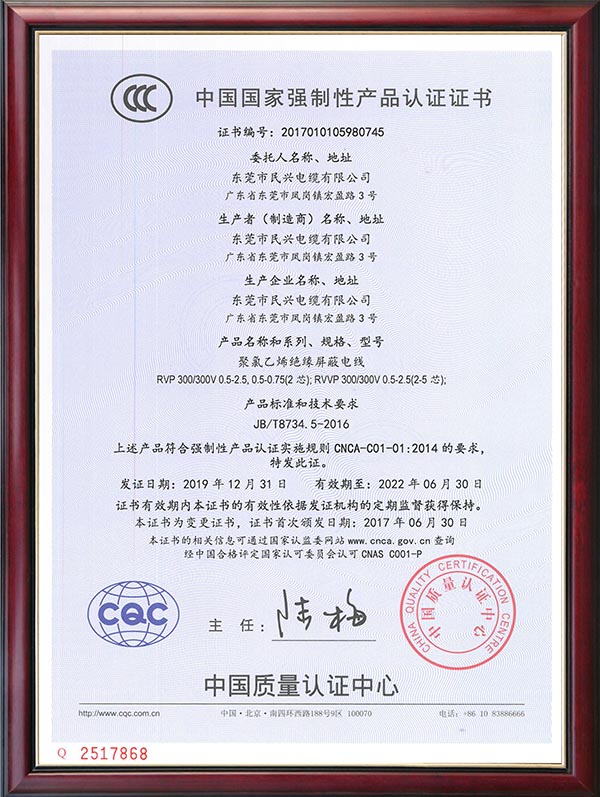 • CQC產(chǎn)品認(rèn)證證書(shū)
